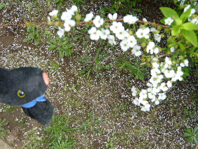 下の白い点々は落ちた花びら♪    さぁ、もうすぐ開くよ~♪