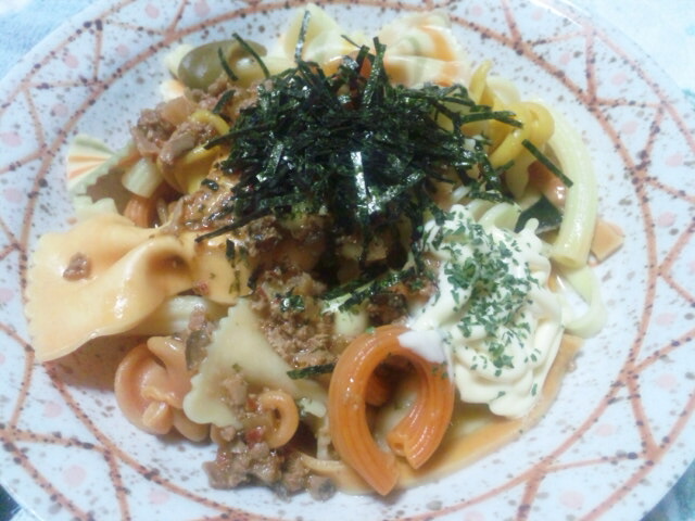 きざみ海苔たっぷり乗せの和風ペペロンチーノ♪