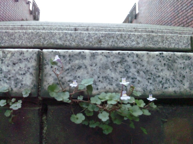 階段の下にこぼれて咲いた小さな花